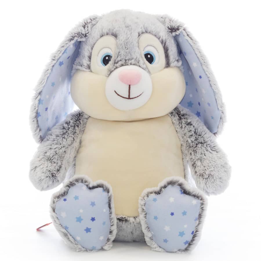 Beebi kaisukas tikkimiseks Cubbies Grey Bunny – Starry Night – kaisujänes beebile kingituseks ja tikandiga personaliseerimiseks