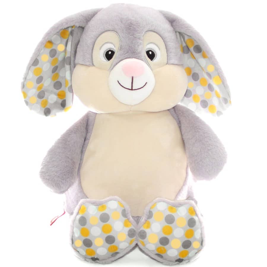 Lahja vauvalle Cubbies Grey Bunny – Polka Dot – pehmojänis vauvalle lahjaksi ja kirjonnalla personointiin