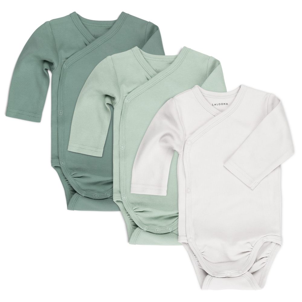 Nämä vauvojen perusvarustukseen kuuluvat pehmeät pitkähihainen kietaisubodyt varmistavat, että lapsesi tuntee olonsa mukavaksi ensimmäisestä päivästä lähtien. 100 % puuvillasta valmistettu halattavan pehmeä kangas on erittäin hellä vauvan iholle. Haaroissa olevien neppareiden ansiosta vaipan voi vaihtaa nopeasti.