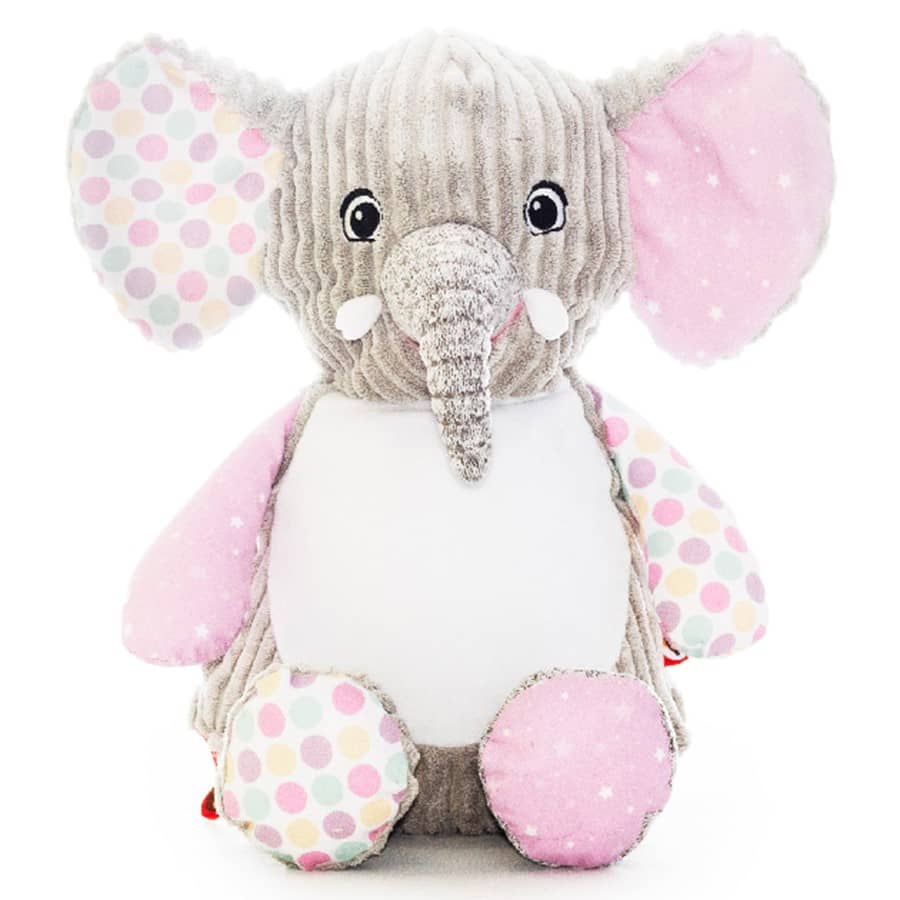 Katsikukingitus beebile Cubbies Sensory Elephant (Bubblegum) Harley – kaisuloom beebile kingituseks ja tikandiga personaliseerimiseks
