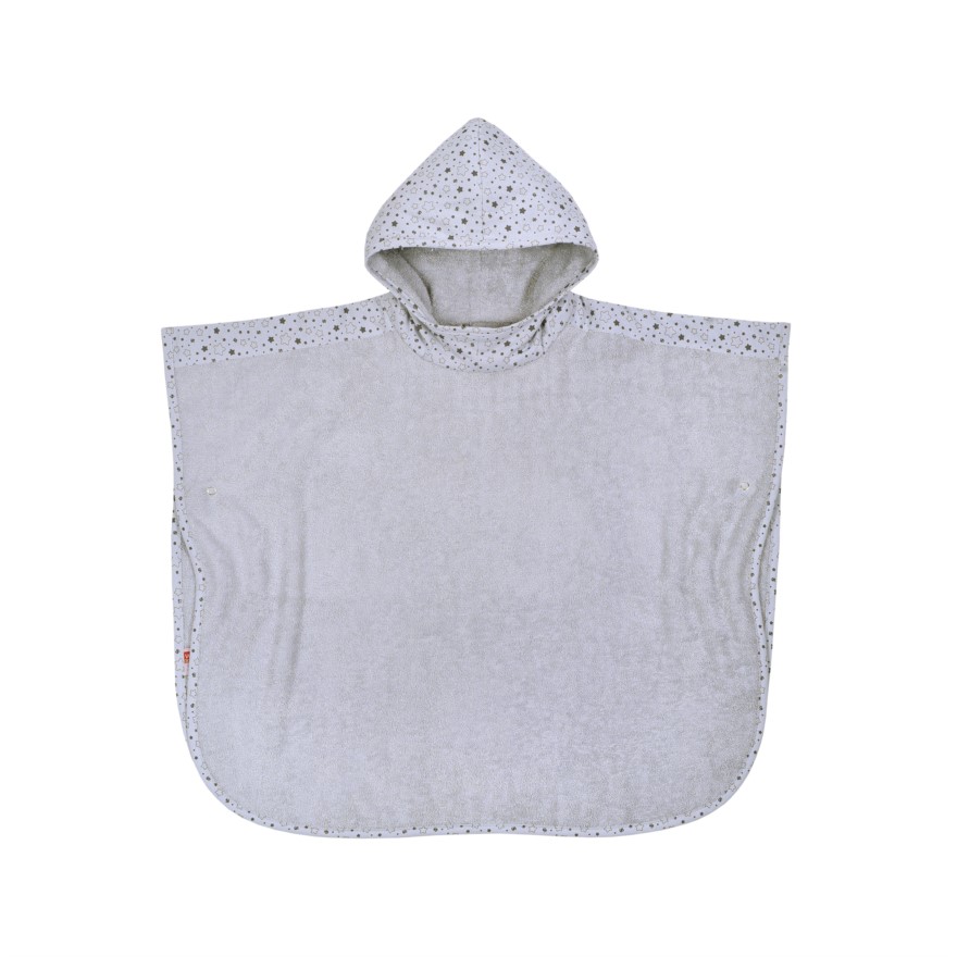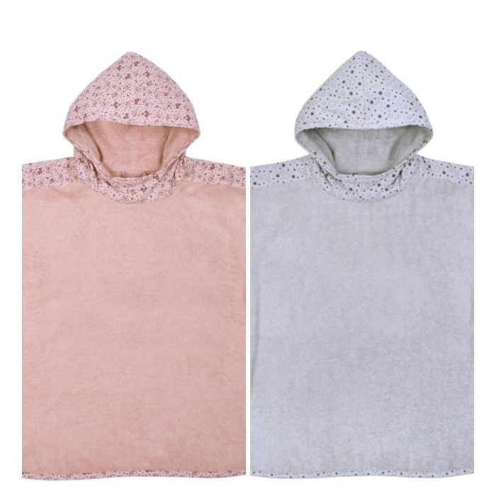 Laste pontšo 75x60cm kohevast froteekangast, kahekordse kapuutsi ja õlaosaga. Kapuutsi ja õlaosa välimine kiht on valmistatud trükitud trikotaažkangast.