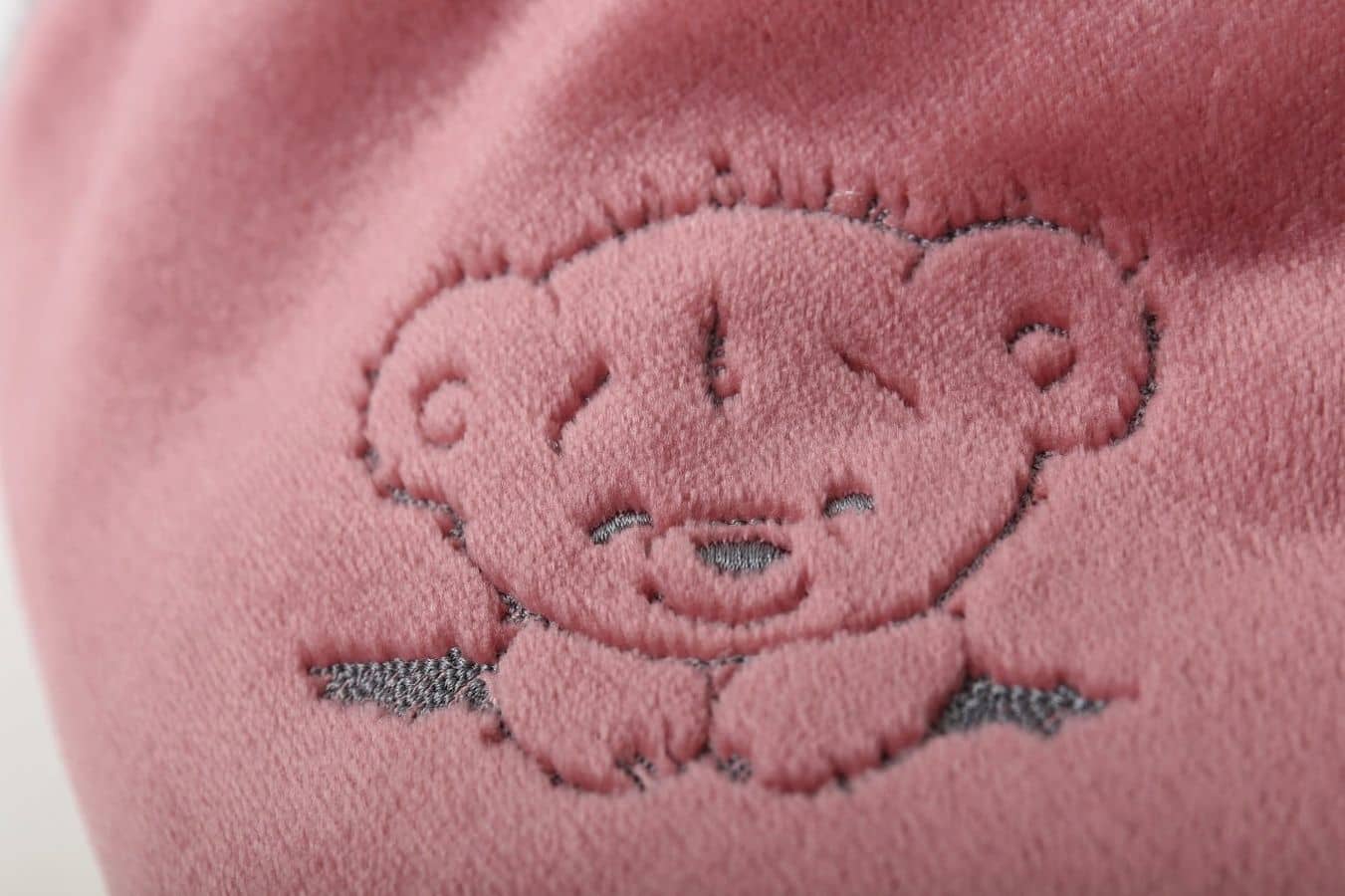 Väga elegantne plüüsist tekk vankrisse, hälli või voodisse. Tekk on väga pehme ja mõnus ning ta on hoolikalt viimistletud kandiga. Tekile on tikitud looma tikand.