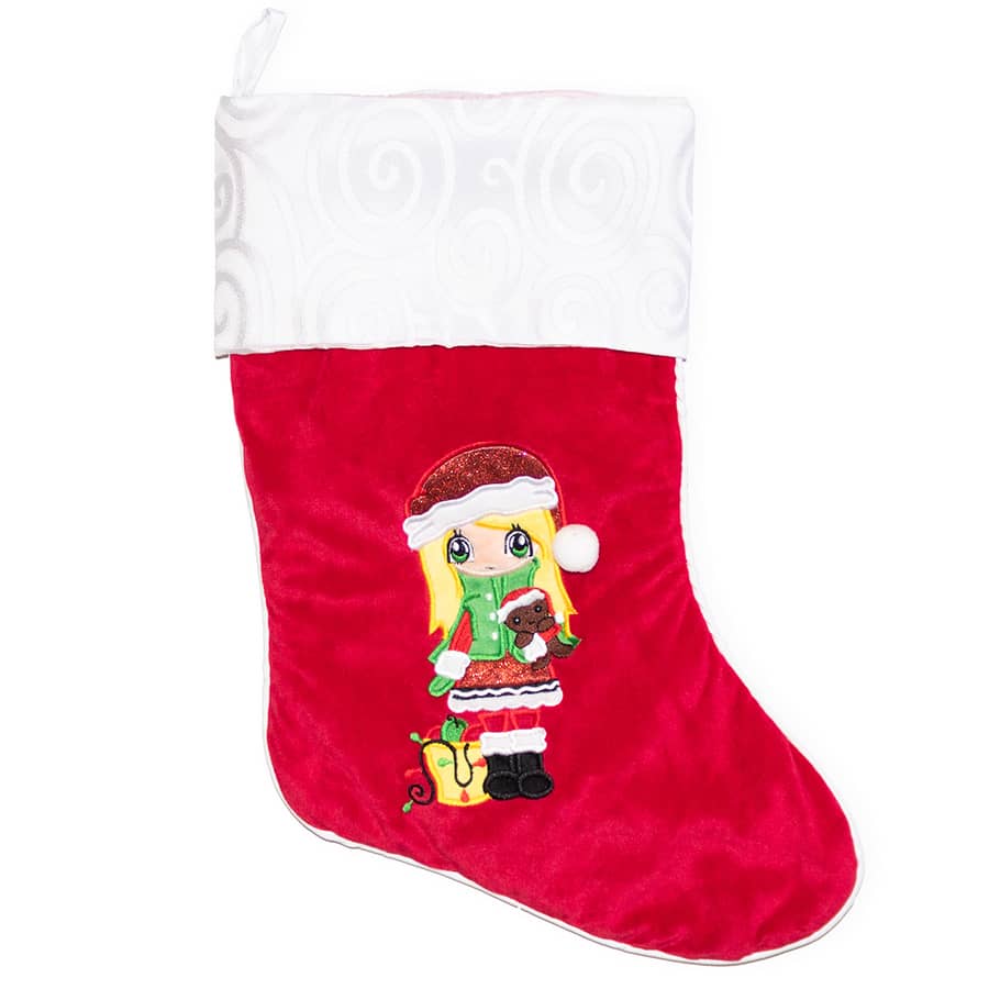 Nimega jõulusokk – Punane tüdrukuga sokk Cubbies Red Girl Stocking – suur tikandiga päkapikusokk kingituseks ja nime tikkimiseks.
