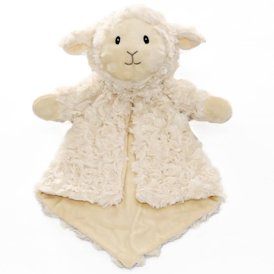 Nimeline kaisutekk Cubbies Lamb Lovie Loverby – kaisulapp lapsele kingiks ja tikandiga kaunistamiseks.